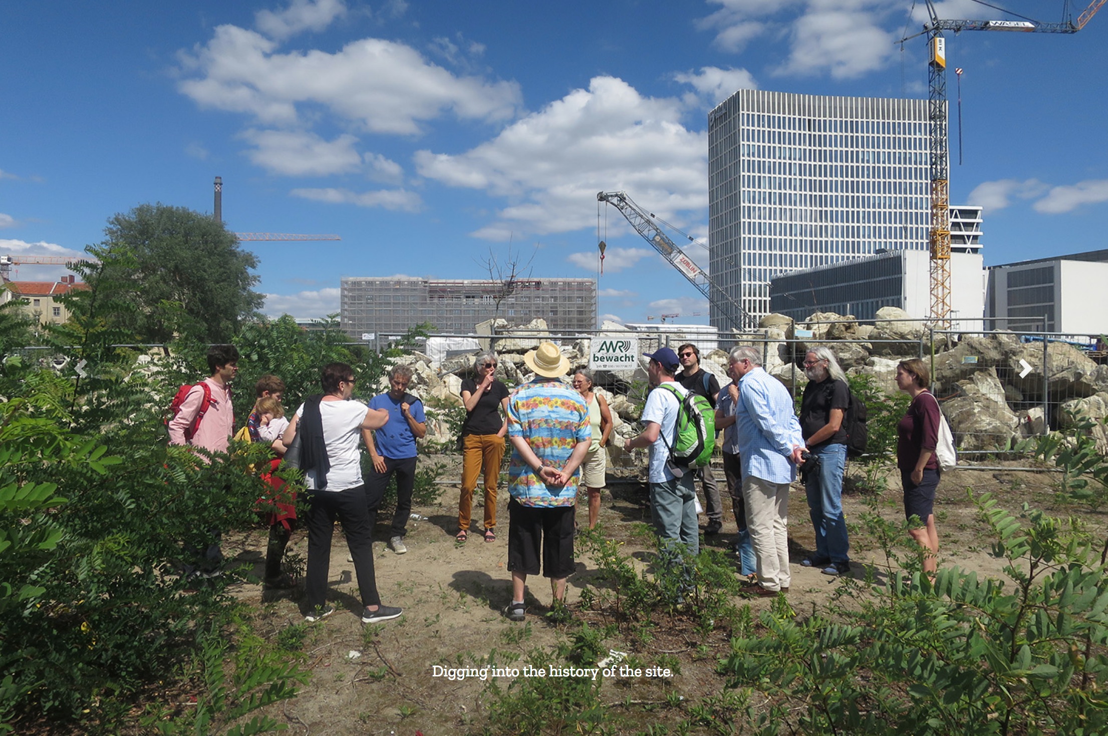 Since Spring 2018, the project “Am Rand von EuropaCity” (At the Border of Europe City) has organised public walks, workshops and an interventions in and around the Europacity in Berlin-Mitte. Bringing neighbors and specialists into dialogue with the new urban landscape by means of collective listening, the project draws attention to the ongoing local/global developments and addresses questions of Europe, borders, city planning, cultural spaces and community.