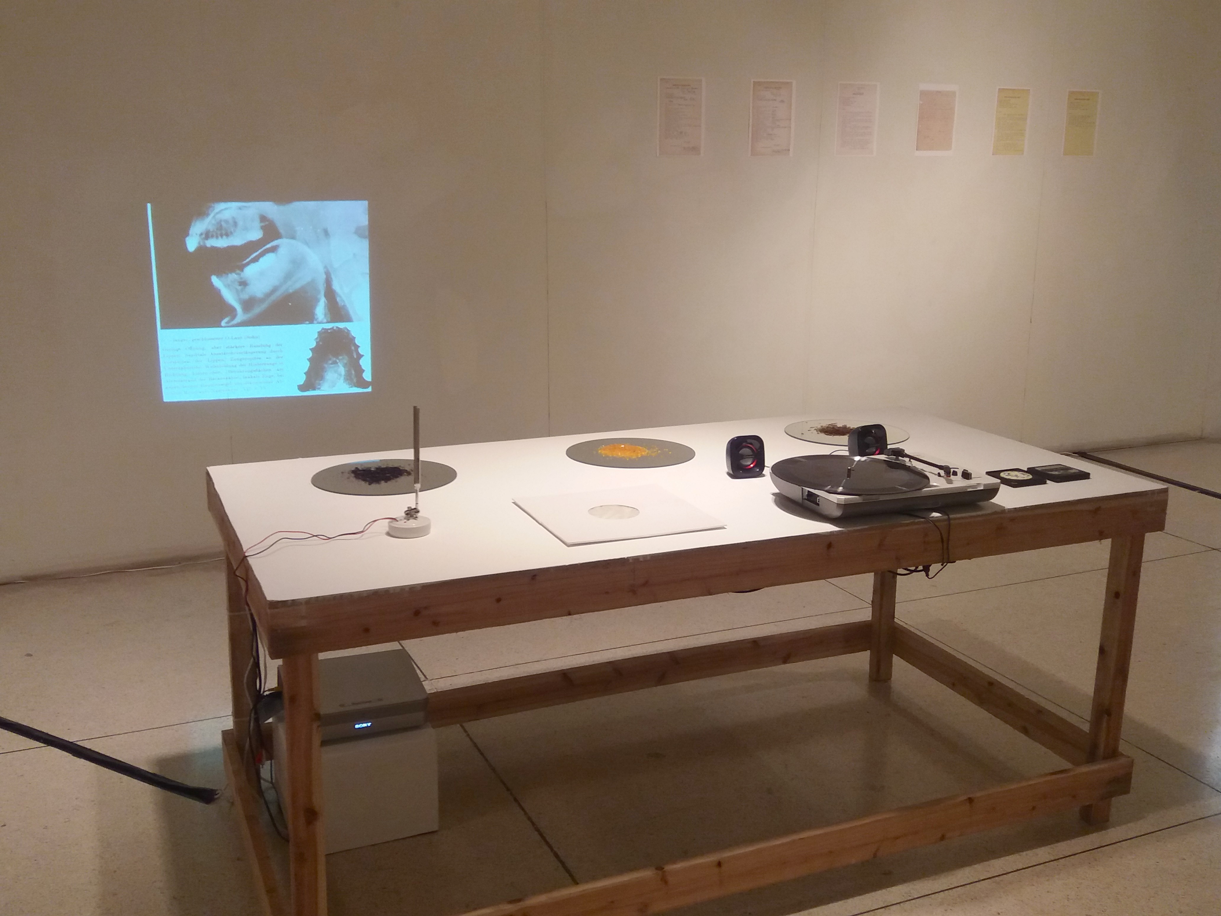 “From A to Om”, installation by Gilles Aubry for the exhibition “Digging Deep, Crossing Far”, Al Hamra Art Center, Lahore, February 2017. Info about the work and video documentation here.