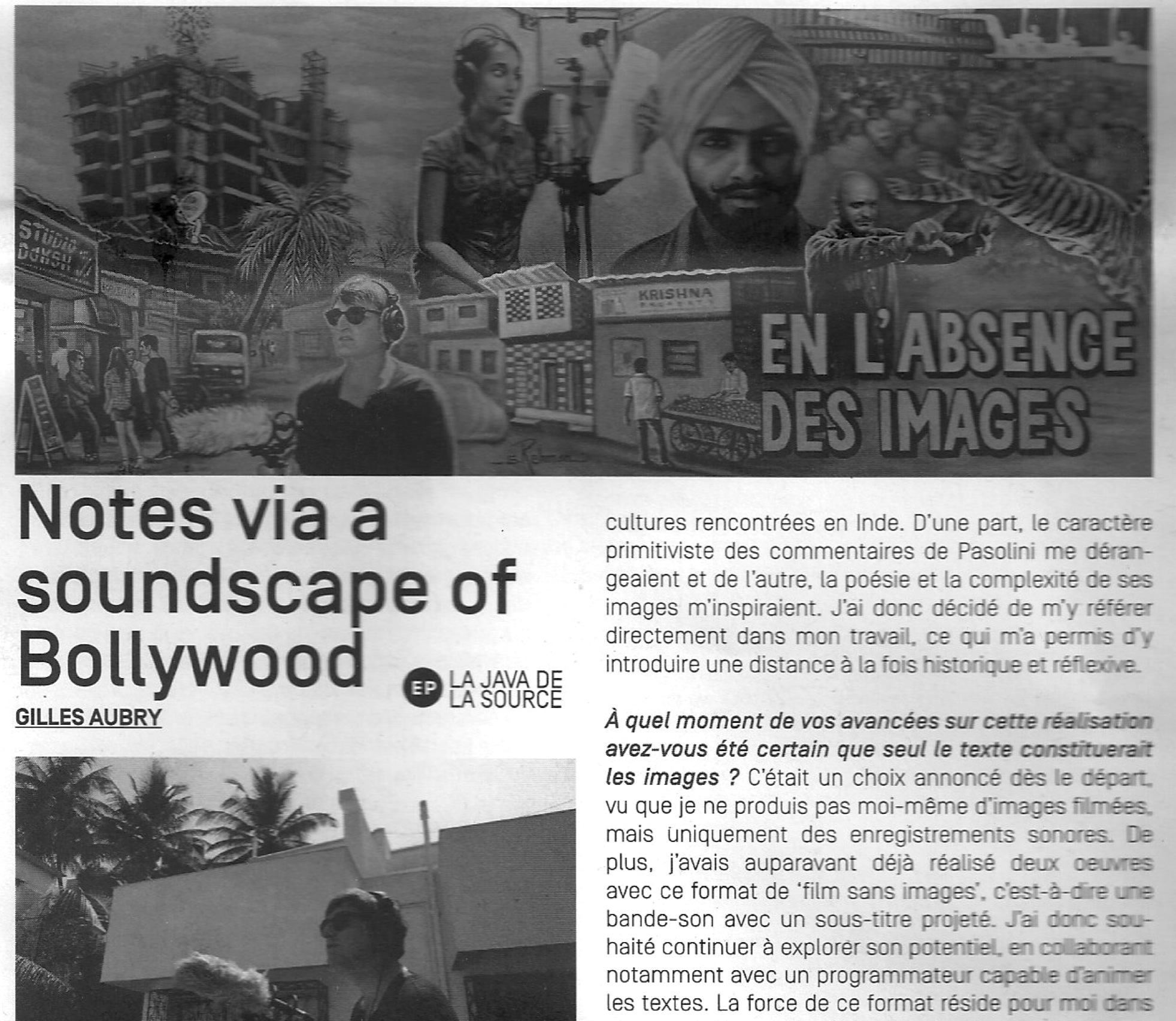 Interview in FID Marseille journal – July 2014 Interview with Gilles Aubry for the premiere of “Notes via a Soundscape of Bollywood” at FIDMarseille 2014. see pdf version here
