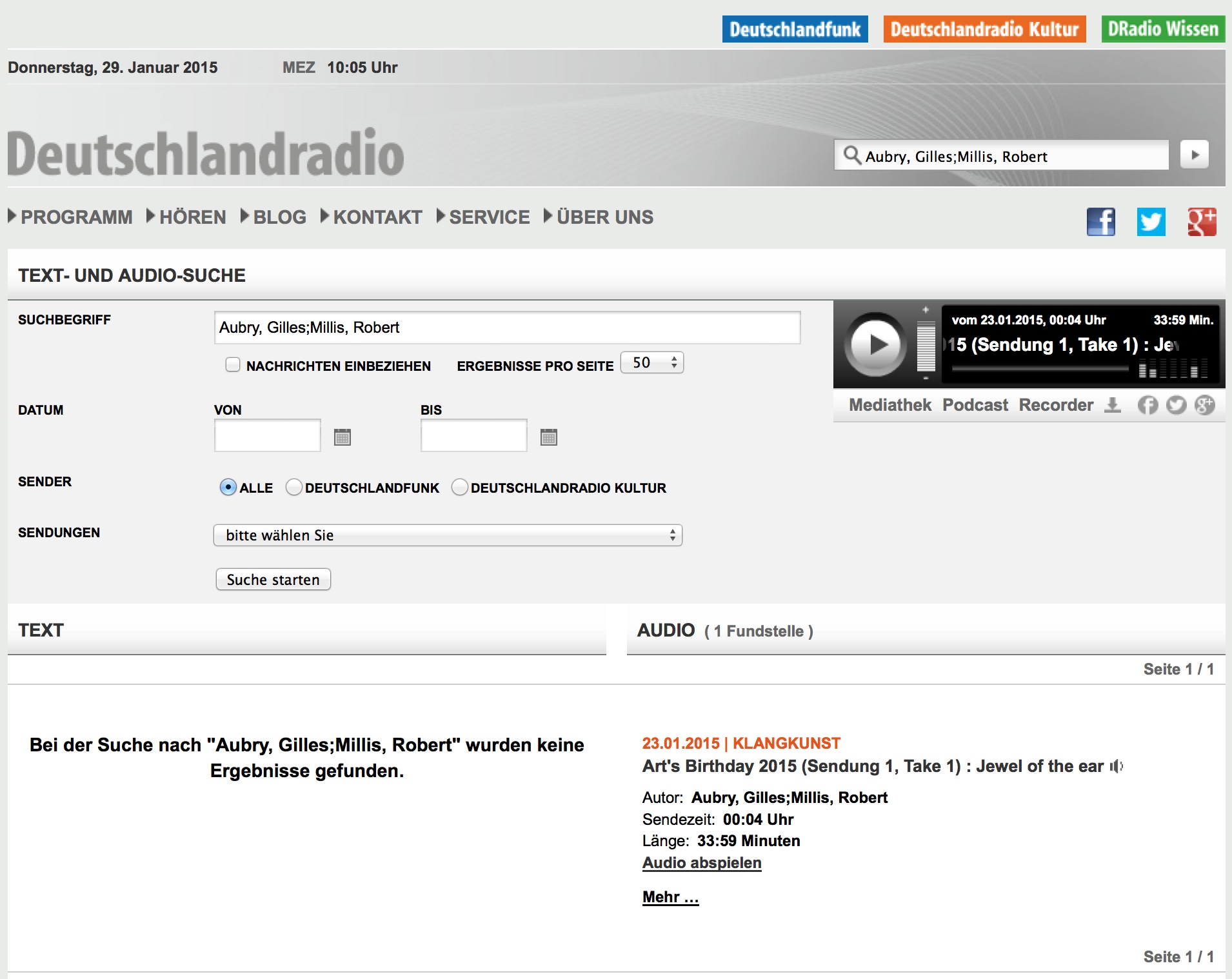 The live recording of the premiere of Jewel of the Ear by Gilles Aubry & Rob Millis is available as podcast on the Deutschland Radio podcast.