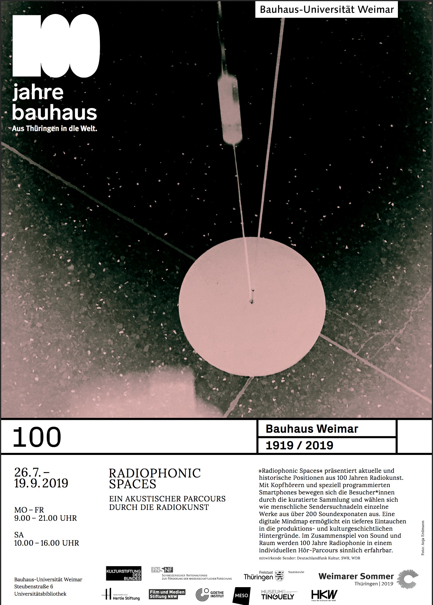 “The Gramophone Effect” (Aubry & Millis, audio 40′, 2017) is presented as part of the group exhibition “Radiophonic Spaces” at the Weimar Bauhaus. The same exhibition was presented at Tinguely Museum Basel and House of World Culture Berlin in 2018.