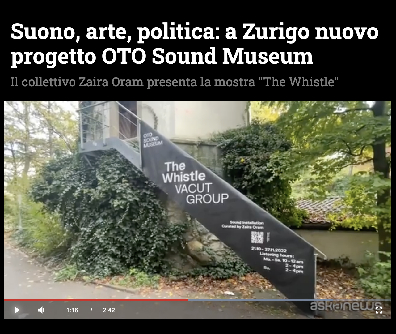The Whistle featured on Askanews TV https://www.askanews.it/video/2022/11/14/suono-arte-politica-a-zurigo-nuovo-progetto-oto-sound-museum-20221114_video_11455146/